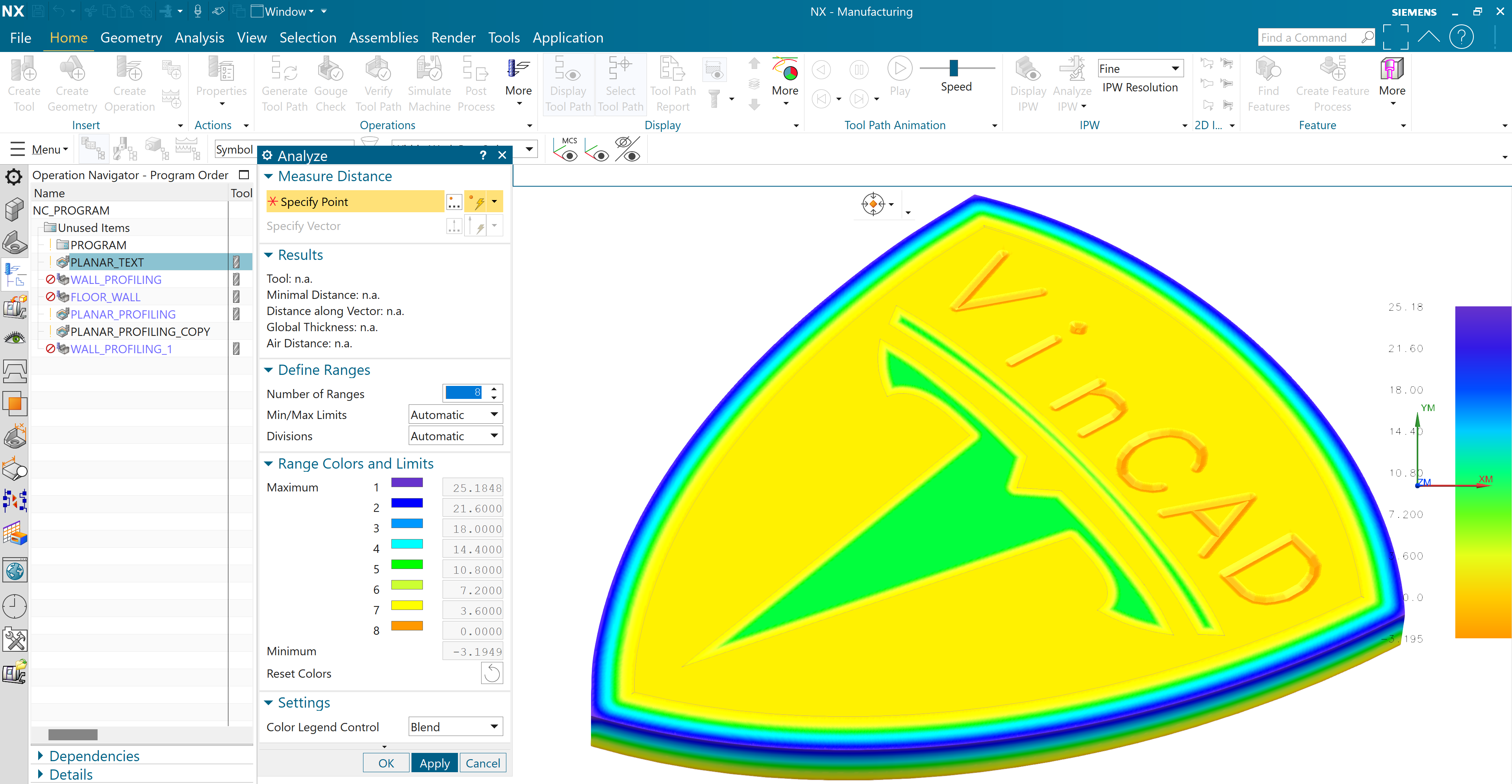 _Trình bày phân tích quá trình gia công Analyze _Hiển thị đường dao, Mô phỏng quá trình gia công. _Hiệu chỉnh màu hiển thị đường dao. _Kiểm tra lượng dư gia công. |