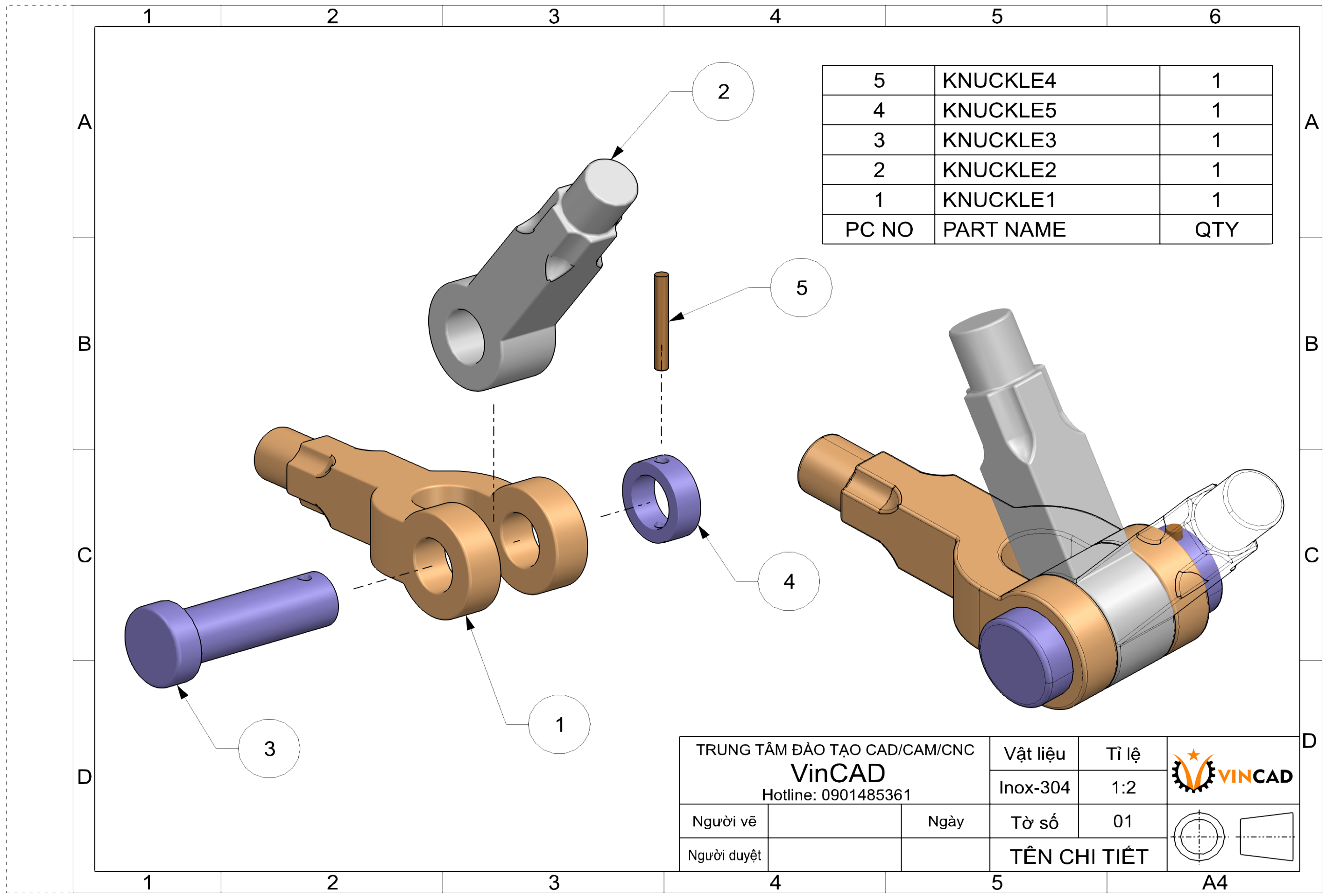 _Trình bày bản vẽ 2D từ mô hình 3D (Drawing). _ Tạo khung bản vẽ mẫu theo qui chuẩn. _ Trình bày các dạng hiển thị hình chiếu 2D _ Trình bày các dạng mặt cắt Section View _ Tìm hiểu nhóm công cụ ghi kích thước – Dimension _ Tìm hiểu nhóm công cụ tạo bảng kê chi tiết – Table _ Công cụ tạo và hiệu chỉnh kích thước – Edit layers _ Hiệu chỉnh tham số kích thước mặc định. _ Ký hiệu sai lệch và dung sai hình dạng. _ Nhập văn bản và ghi các yêu cầu kỹ thuật. _Trình bày bản vẽ phân rã cụm lắp ghép. _Đánh số thứ tự và tạo bảng liệt kê chi tiết. _Bài tập thực hành xây dụng bản vẽ kỹ thuật. |